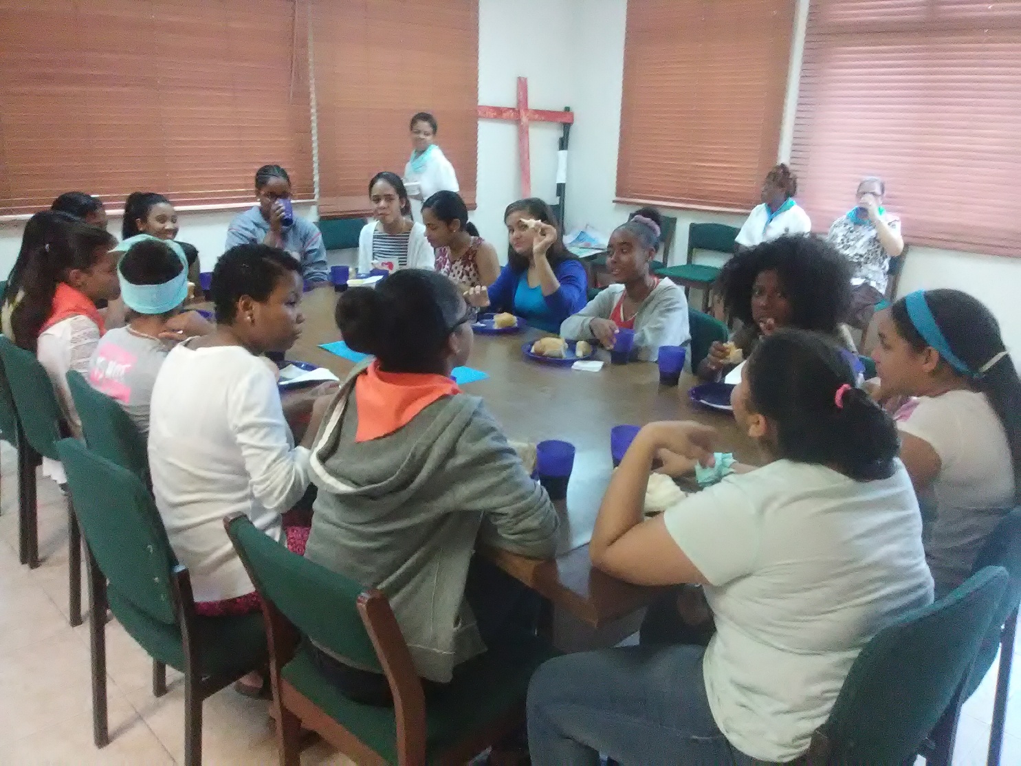 Participaron 15 jóvenes de los centros educativos Liceo El Carmen, Ramón Matías Mella, Inmaculado Corazón de María, Hogares Teresa Toda de Azua; dos jóvenes de Bánica, provincia Elías Piña, que conocieron a nuestras Hermanas en jornadas pastorales de la Diócesis de San Juan de la Maguana y tres jóvenes que nos conocieron en un encuentro juvenil arquidiocesano en Santo Domingo. Acompañamos a las jóvenes las Hnas. Altagracia Marmolejos, Altagracita Mateo, Ariela Ciprian, Briseidy Jiménez, Orlanda García, Milka Bautista, Stephanie Santiago y la novicia Estefanía Veras.