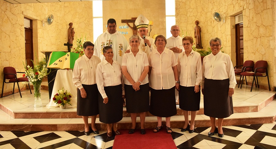 El sábado 12 de mayo del 2018, la Provincia Nuestra Señora de la Altagracia se vistió de fiesta para celebrar las bodas de oro de cuatro Hermanas de esta Provincia: Minerva Eridania Martínez, Elvira Trigal Miguélez, Marta Andújar Lemonier y Delfina Vidal Martínez, con ocasión de la clausura de la visita canónica de la Superiora General, Hna. Maria Rosa Bernardo a la demarcación.Esta celebración fue presidida por Mons. José Dolores Grullón Estrella, Obispo de la diócesis de San Juan de la Maguana, que con gran alegría acogió la invitación a presidir la celebración.