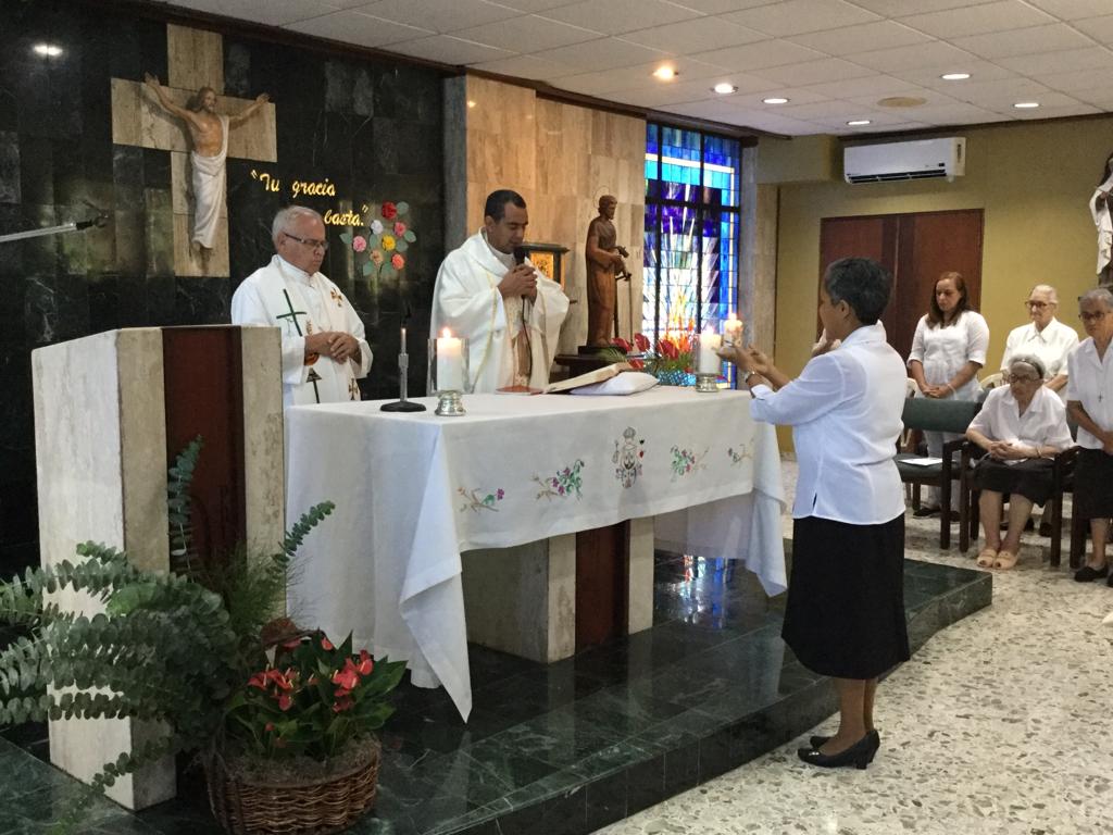 Con gran alegría y agradecimiento se celebraron los 50 años de vida consagrada de las Hermanas María Consuelo Ortíz Ortíz y Alondrina María Trinidad Díaz, el 12 de octubre del año en curso, con una eucaristía de acción de gracias cargada de detalles y gestos de vida, que adornaron el momento celebrativo. Este evento se realizó en la capilla de la Casa Provincial en Santo Domingo, allí aprovechamos la ocasión para dar gracias al Señor por los 70 años de vida religiosa de la Hna. Inés Peña Pérez, que también renueva la fidelidad de Dios en ella.