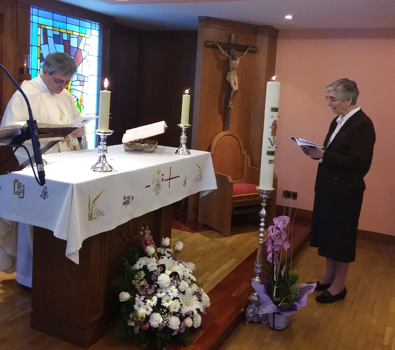 El 06 de mayo, en la casa de Agastia 22-24, en la celebración eucarística presidida por el P. Pedro Manzano, Párroco de la Parroquia San Ireneo, dimos gracias a Dios por los 50 años de vida religiosa de Hna. María Rosa Bernardo Llamazares, nuestra Superiora General.