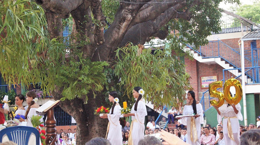 Valoramos y agradecemos al colegio El Carmen Teresiano de Cúcuta su vinculación a la celebración de las Bodas de Oro del Colegio, participando con la presentación de las Porristas, baile folclórico y exposición de muestras artísticas de las estudiantes.
