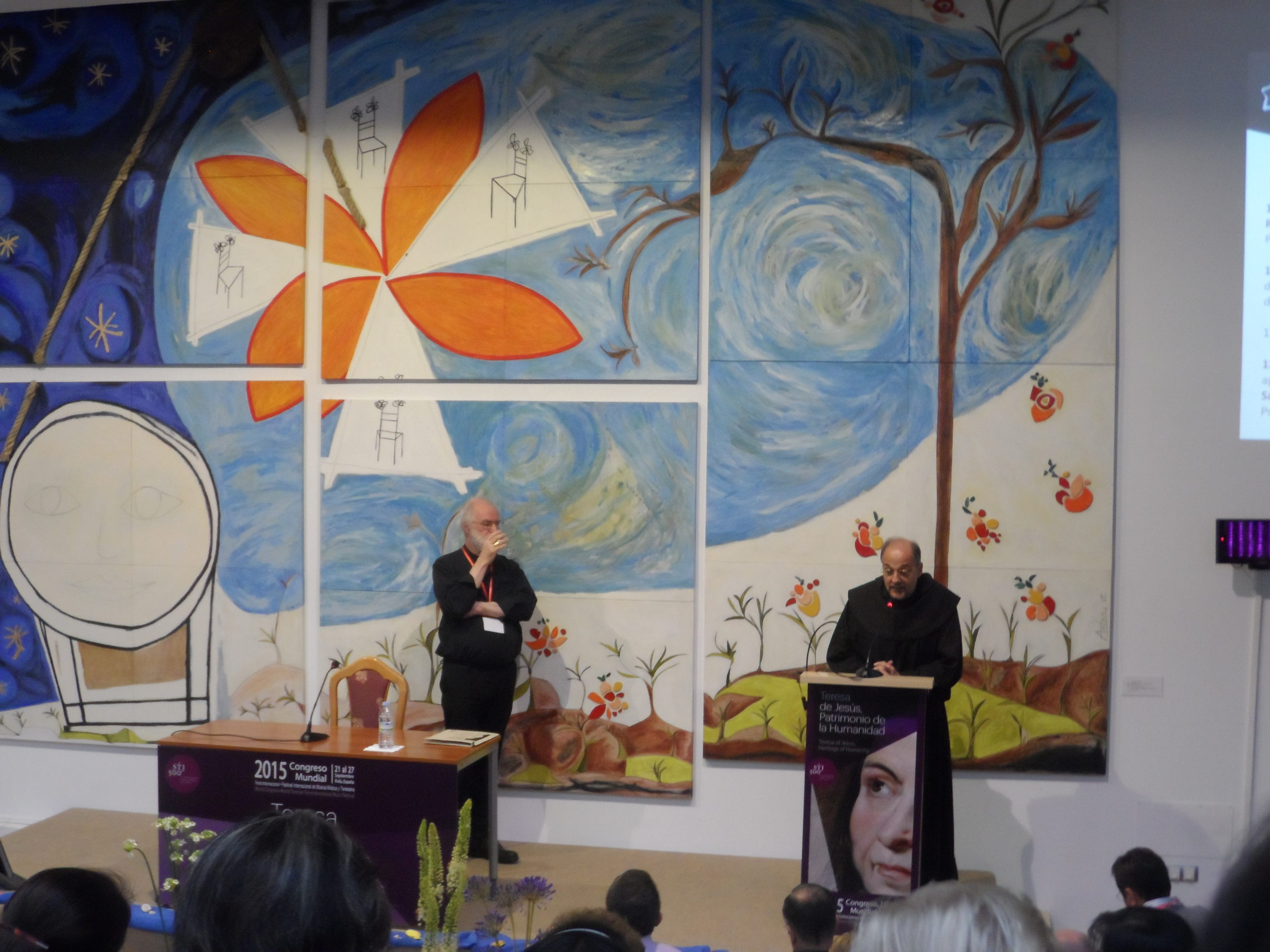El martes 22 de septiembre, en la jornada de la mañana, se han presentado tres conferencias, dos de carácter interconfesional, la primera Teresa de Jesús, un pilar para el ecumenismo, orientada por Rowar Williams, obispo de la Iglesia Anglicana de Cambridge y la segunda por el Secretario de la Unesco para el diálogo interreligioso el Dr. Francesc Torradeflot, ambos apuntaron presentaron argumentos válidos de la doctrina teresiana para una conversación ecuménica, siendo ésta una de las herencias a los cristianos de todas las confesiones.