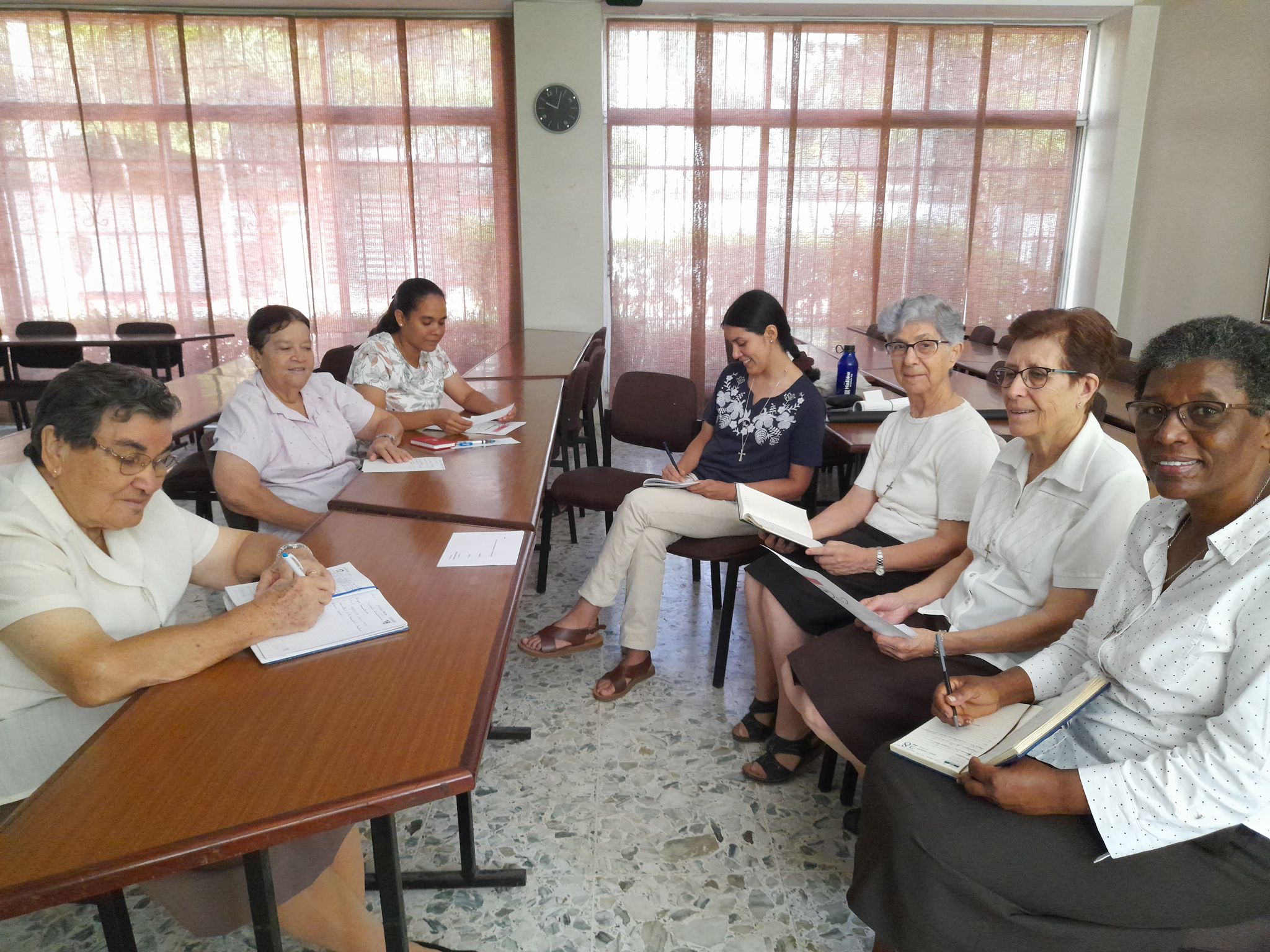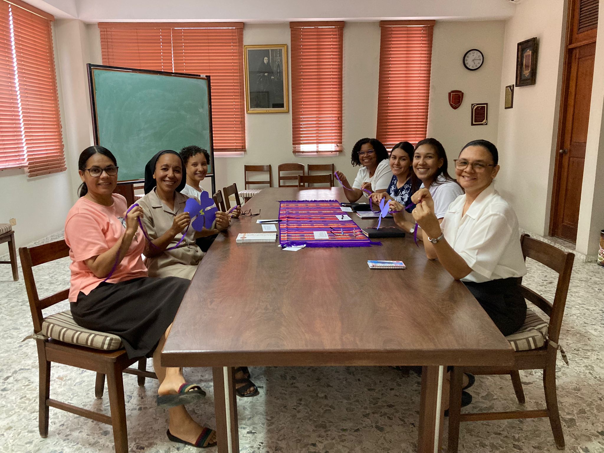 Terminamos nuestro primer día de encuentro animadas porque en enero del próximo año estaremos celebrando 75 años de presencia en tierras dominicanas, pero también agradecidas porque nuestra Hermana Carmen Fernández quiso compartir con nosotras lo que significó para ella realizar un mes de Ejercicios Espirituales y celebrar 50 años de Vida Consagrada; las Hermanas que participaron en la Jornada Mundial de la Juventud, realizada en Lisboa, nos contaron la alegría del encuentro con el Papa Francisco; nuestra Hermana Stephanie Santiago nos habló de su Profesión Perpetua y las Hermanas que peregrinaron a Tierra Santa se mostraron agradecidas porque conocieron la tierra que pisó Jesús.