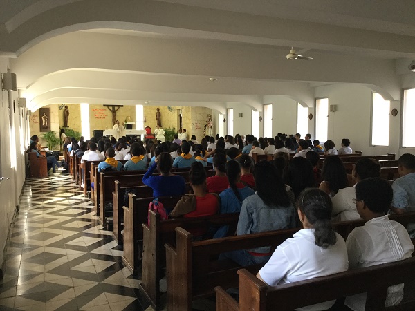 El encuentro inicio con la celebración de la Eucaristía, presidida por el Padre Rafael Frías Reynoso, C.M, dando gracias al Señor por el llamado que nos ha hecho, de ser luz para nuestros compañeros. Este encuentro nos acompañó una persona muy especial para la familia de H.H. Carmelitas Teresas de San José, la Hermana María Loudes Marcos Playá, encargada de la Pastoral del Gobierno General, ella nos .aclaró diferentes aspectos de la vida, y el que más destacó fue que tenemos que ser jóvenes valientes, dándonos a entender también la importancia de los valores, que a través de ellos podemos trasformar nuestros entornos. Todo esto lo compartimos bajo el lema “Jóvenes en salida.”