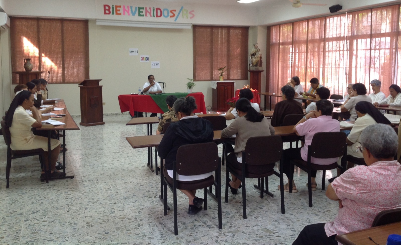 Nuestro segundo día, una jornada de reflexión prevista en tres momentos, dos por la mañana y uno por la tarde. Fue acompañada por el carmelita descalzo, Ariadis. La temática: la centralidad de Cristo en nuestra vida. A ejemplo de Jesús: vivir como mujeres ungidas por el Espíritu, mujeres de fe, orantes, fraternas y conciliadoras, de gran esperanza, fecundas, valientes, apasionadas por la vida… “mujeres del alba”. Mujeres que reconocen la noche que atraviesan, pero no paralizadas por el miedo o la desesperanza, al contrario sabedoras del gran tesoro del Carisma heredado por las Madres Teresa Toda y Teresa Guasch, atentas a los clamores de la humanidad.