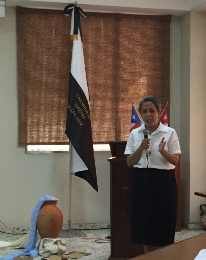 Agradecemos al Señor la oportunidad de haber tenido a la Hna. Dania Rodríguez, en representación del Gobierno General para acompañar la jornada de reflexión de entrega de las Disposiciones del XXVII Capítulo General. Dirigió la oración comunitaria de inicio de la jornada de oración – reflexión, luego entregó la guía de reflexión que recogía algunos párrafos de la primera parte del documento capitular que situaba sobre los clamores de la realidad, haciendo memoria de la belleza de nuestra historia congregacional, como preparación a la recepción del documento de las Disposiciones del XXVII Capitulo General.