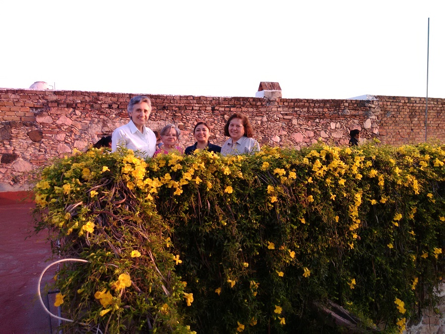 Aprovechando la visita de la Hna. Cecilia Barreda, Coordinadora a nivel nacional de las Fraternidades, convocadas por ella, nos hemos reunido en el Hogar de la Niña y la Joven, de la Ciudad de Querétaro, María Victoria Salinas Sandoval, María Elena Eyssautier Fernández y Ana Celia Castañeda Almanza, Coordinadoras de las Fraternidades Ruáh, Kerigma y Getsemaní, respectivamente, para preparar juntas el primero de los Encuentros.