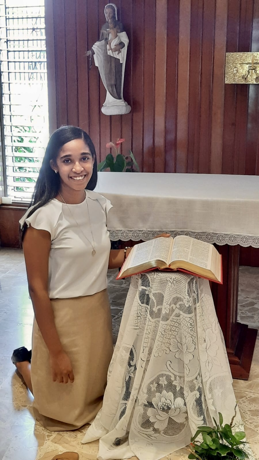 Fue una celebración cargada de significado para mí, en cada palabra y en cada canto se me hacía una invitación a caminar de la mano del Señor que me ha llamado, con la confianza de que él me sostendrá en este camino. El ambiente de fraternidad lo sentí como un reflejo de la presencia de Cristo resucitado, también el poder contar con el apoyo de todas las hermanas que en su cercanía me dieron mucho ánimo y cuyas presencias me llenaron de gran alegría.