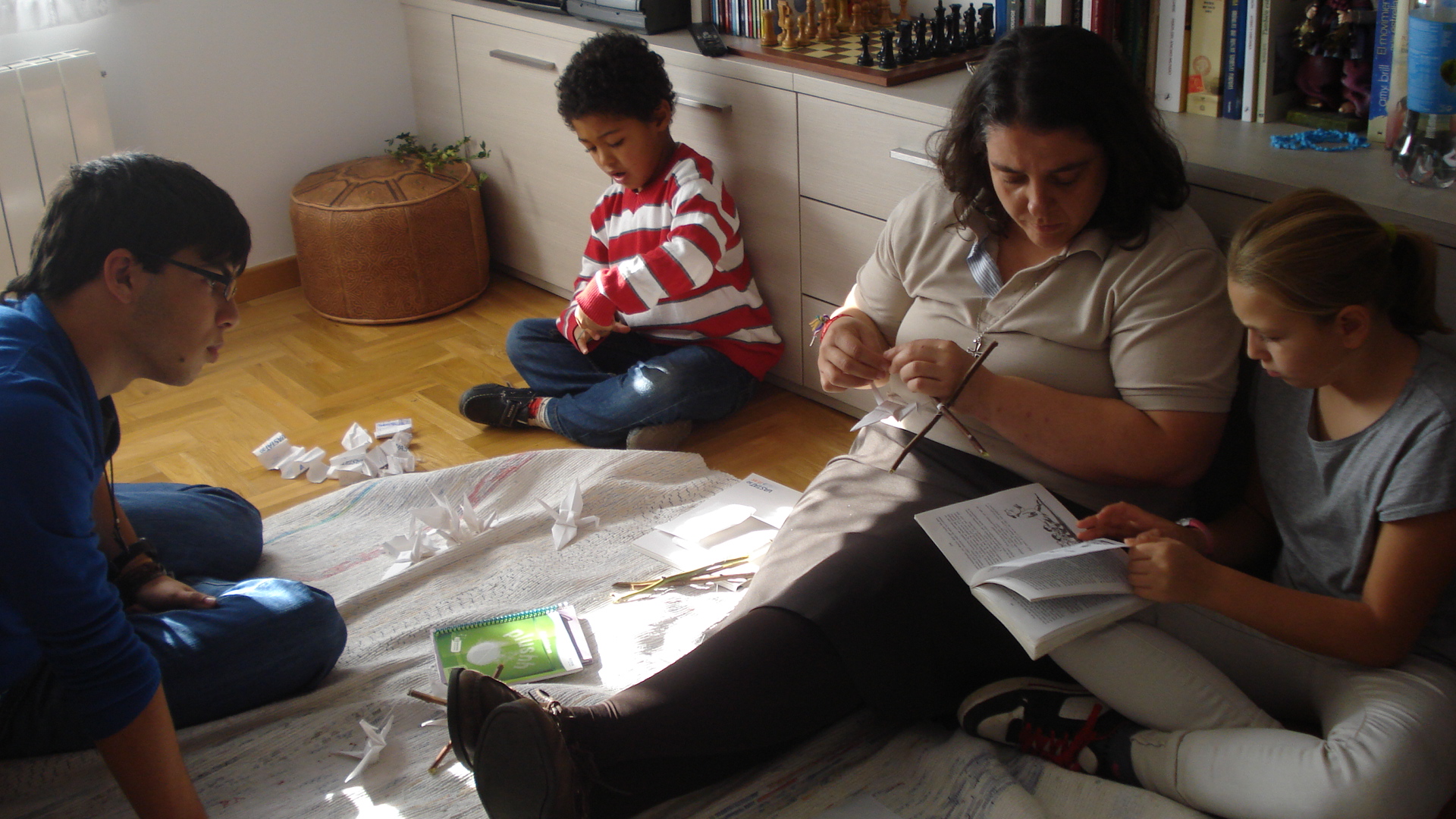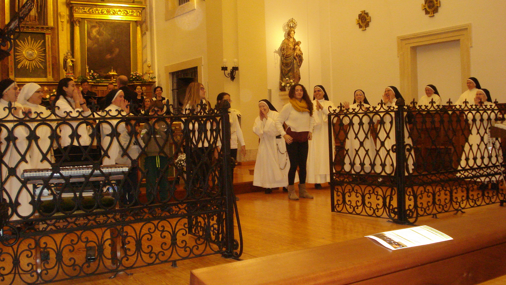 Por la tarde asistimos al Convento de las Dominicas, en la misma ciudad. La Asociación juvenil “Sagrada Cena” de Huelva, ofrecía un concierto de canto y música, dando inicio al Jubileo que los Dominicos celebran este año. Todos eran cantos religiosos dedicados a la Virgen. Para inaugurar el año, cantaron el propio del Jubileo. Aprovecharon para invitar al público que formara parte en el baile y ritmos de la canción. Nuestros acogidos se sumaron a la fiesta y junto a las monjas y público, se animaron a danzar. Al finalizar regalaron a nuestros niños, rosarios tejidos por ellas.