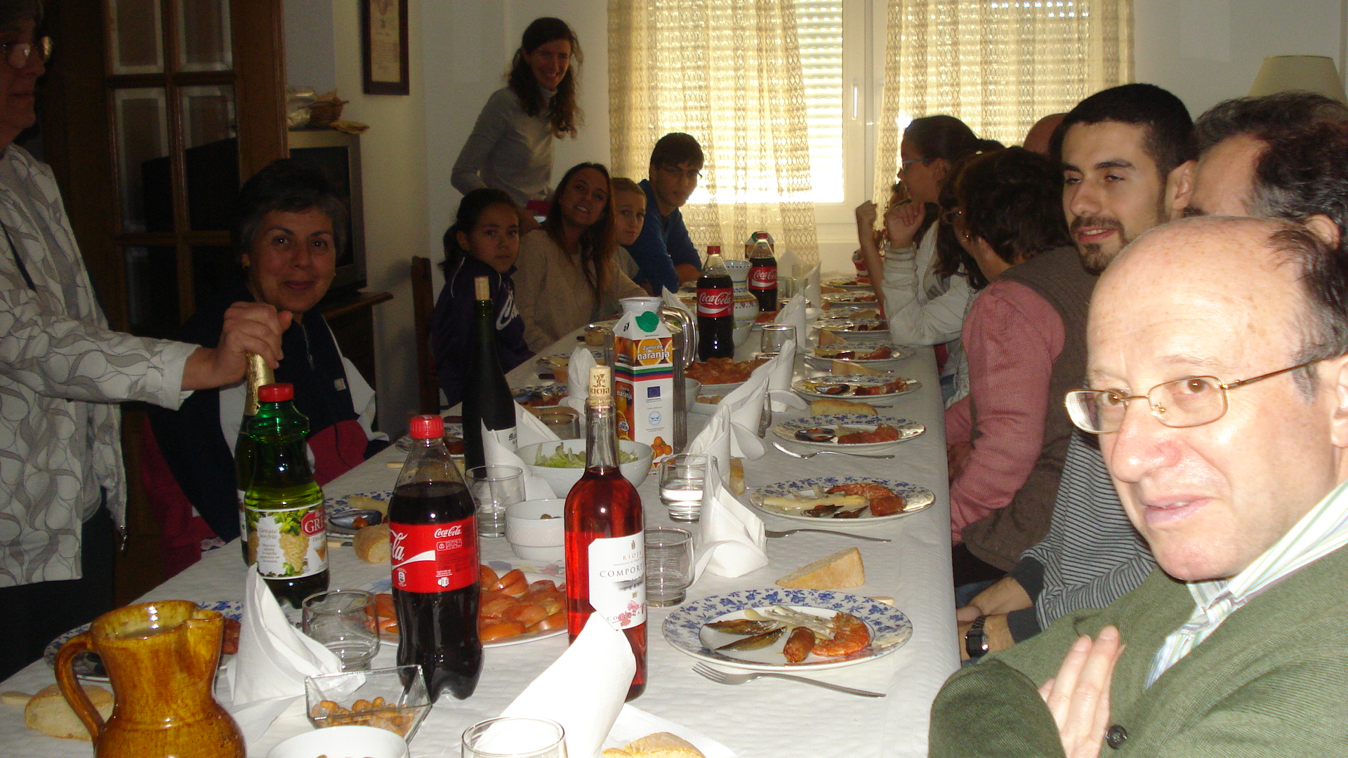 Al día siguiente, domingo, acudimos a misa del pueblo. A la hora de comer, nos juntamos, en una amplia mesa que acogía 23 personas (se unieron los padres y hermano de otra de nuestras Hermanas) pudimos degustar la parrillada de chuletas y morcilla (con sabor a leña) con otros entrantes que prepararon.