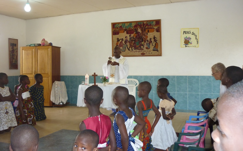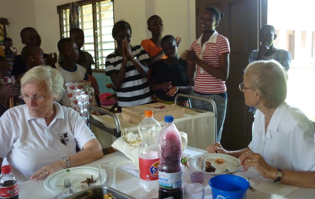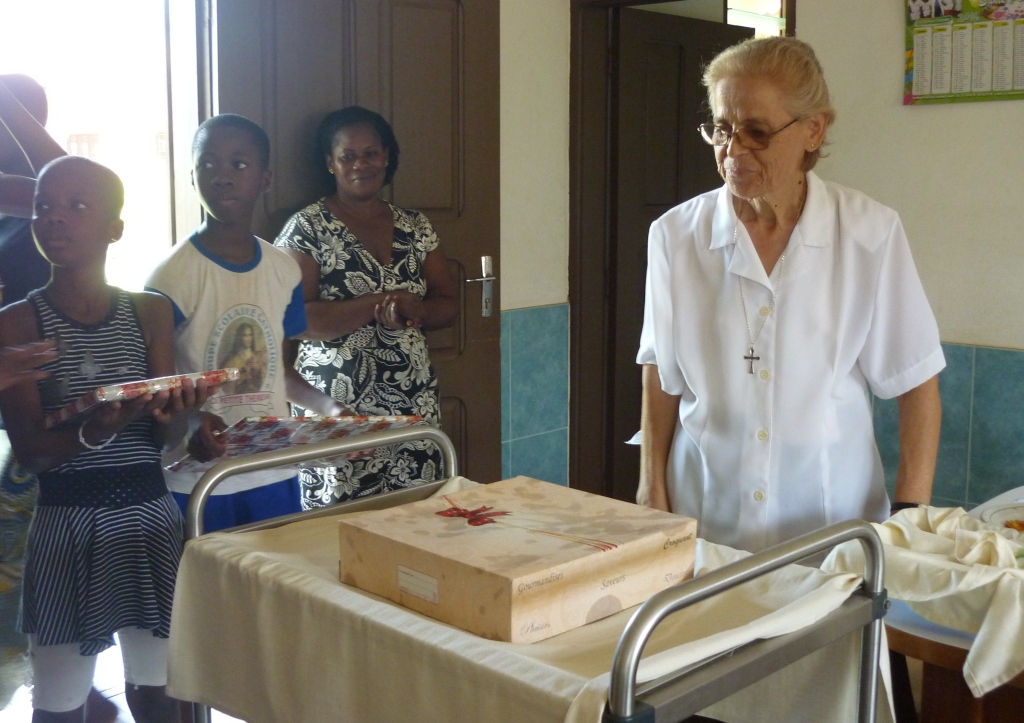 Aquel primer día, mis padres me acompañaron junto a las Hermanas y compañeras de grupo con los familiares. En esta ocasión me ayudaron a dar gracias al Señor, las Hermanas de mi comunidad, las Hermanas de la comunidad de Grand Bassam y las 42 niñas del Hogar Betania, que con sus voces angelicales y acompañadas por la Hna. Alma Lidia con su guitarra, llenaron de alegría y solemnidad el momento de la Eucaristía y el resto del día.
