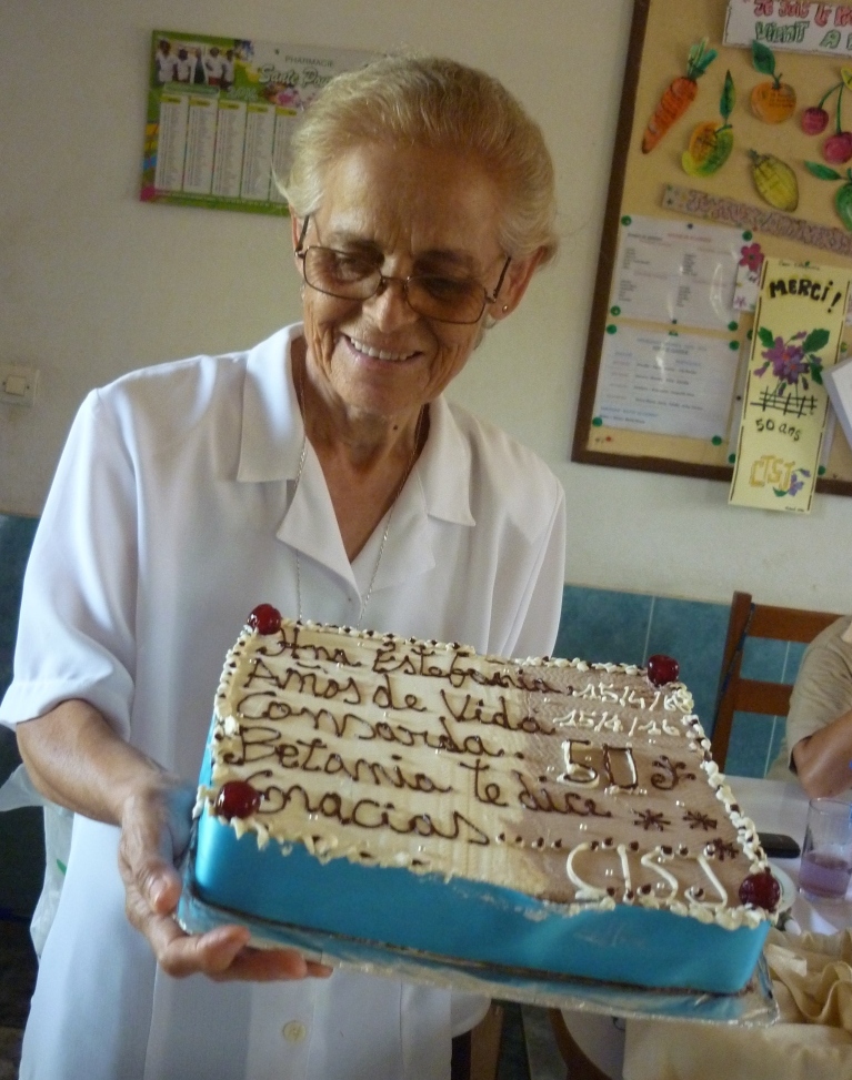 A todas vosotras, Hermanas, las de cerca y las de lejos, a todas os sentí cerca y unidas a la alabanza y gratitud que de manera especial quiero expresar al Señor con motivo de mis Bodas de Oro en la vida religiosa. GRACIAS Hermanas por vuestra ORACION, por vuestros deseos expresados en las bonitas postales que me habéis enviado. Las contemplo y leo una y otra vez y mi corazón se llena de gozo y ganas de seguir creciendo en fidelidad al Señor y amor a cada una de vosotras.