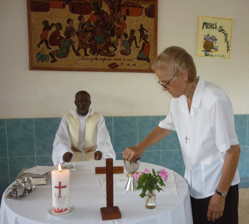 Como estaba previsto, el día 16 de abril de 2016, a las 8 de la mañana, comenzó la Eucaristía de acción de gracias por los 50 años de mi Consagración religiosa como Carmelita Teresa de San José. 50 años desde aquel 15 de abril de 1966, entonces en Barcelona, hoy en Costa de Marfil. Verdaderamente el Señor ha estado grande conmigo y por ello repito una y mil veces GRACIAS, SEÑOR por el regalo de la vocación.