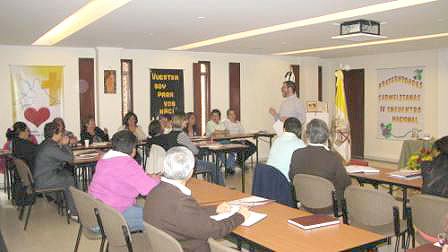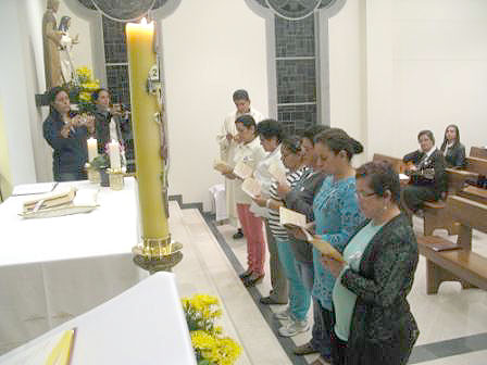 Durante los días 31 de mayo, 1 y 2 de junio del presente año, se llevó a cabo el IV Encuentro Nacional de Fraternidades Carmelitanas en Bogotá en la Casa Provincial, enmarcado en el lema: «PARA VOS NACÍ». Participaron del mismo 31 fraternos provenientes de Cúcuta, Medellín, Sonsón y Bogotá, todos con gran entusiasmo y deseos de encuentro con el Señor, con las hermanas y con los fraternos de otras regiones.Participamos también las hermanas del Gobierno Provincial, las Coordinadoras locales de los grupos de Fraternidades Carmelitanas de Bogotá, Medellín y Cúcuta y las hermanas de la Casa Provincial. Unas participamos de tiempo completo, otras en determinados momentos, no en todos, por motivo de la atención del grupo y de la casa.Se dio comienzo a este encuentro con un saludo fraternal y cercano de la Hermana María Anunciación Gil Tomé, Superiora Provincial. Se leyó también un significativo mensaje de saludo y comunión enviado desde Madrid – España, por Hna. María Lourdes Marco Playá, Delegada General de Pastoral, e igualmente expresaron su saludo las hermanas Hilda Lucía Ruíz Idárraga como Coordinadora Nacional de Fraternidades y Angela María Zuluaga Ospina como Presidenta de Pastoral.A continuación se realizó un espacio de oración, que dio paso a la reflexión central del día, en torno a la figura de Santa Teresa de Jesús, nuestra patrona, orientada por el Padre Richard Bayona, OCD, quien con sencillez y profundidad nos introdujo en la vida y obra de Santa Teresa, desde sus años de infancia y vida de familia hasta su ser de Reformadora, Fundadora y Escritora. Esta reflexión se desarrolló con una metodología dinámica y de participación, que logró bastante motivación en torno a la vida y obra de la Santa, por su talante y su grandeza en el amor a Dios. La parte final estuvo encaminada a buscar la mayor sensibilización y concientización sobre la importancia de la oración a través de la experiencia que ella vivió y, en verdad los participantes quedaron especialmente motivados por introducirla más conscientemente a sus vidas. También Finalizamos esta primera parte del encuentro con la celebración de una solemne y hermosa eucaristía.Posteriormente y con base en la lectura de algunos capítulos de la Exhortación Apostólica del Papa Francisco: «La alegría del Evangelio», se realizó una reflexión encaminada a buscar y encontrar ¿qué pide la Iglesia hoy a los laicos como hijos de Dios?El día lunes, la Hermana Lisdey Marcela Sierra explicó el significado y metodología de la «Lectio Divina» con el propósito hacer una experiencia oración más profunda desde la Palabra. Después se releyeron los Estatutos de las Fraternidades Carmelitanas y se dialogó sobre la importancia de asumir compromisos concretos más allá de las reuniones, éstos se dialogaron y concretaron tanto en cada Fraternidad local, como a nivel general, para conocimiento de todos. Igualmente se planteó la necesidad y la importancia de buscar la posibilidad de un reconocimiento eclesial a nivel Pontificio. Todo este trabajo fue especialmente serio y comprometedor.Las Eucaristías fueron celebradas por los sacerdotes Richard Bayona (OCD) y Misael Meza (SJ), de una manera sencilla y profunda, y en una de ellas, seis Fraternos realizaron sus compromisos después de un tiempo significativo de andadura en sus respectivas Fraternidades locales.Damos gracias al Señor por este encuentro de Fraternidades Carmelitanas y ponemos en sus manos las metas planteadas por ellos, encaminadas a hacer realidad el deseo que tienen de vivir y trabajar, desde su condición laical, por extender el Evangelio a la luz de nuestro Carisma y Espiritualidad.