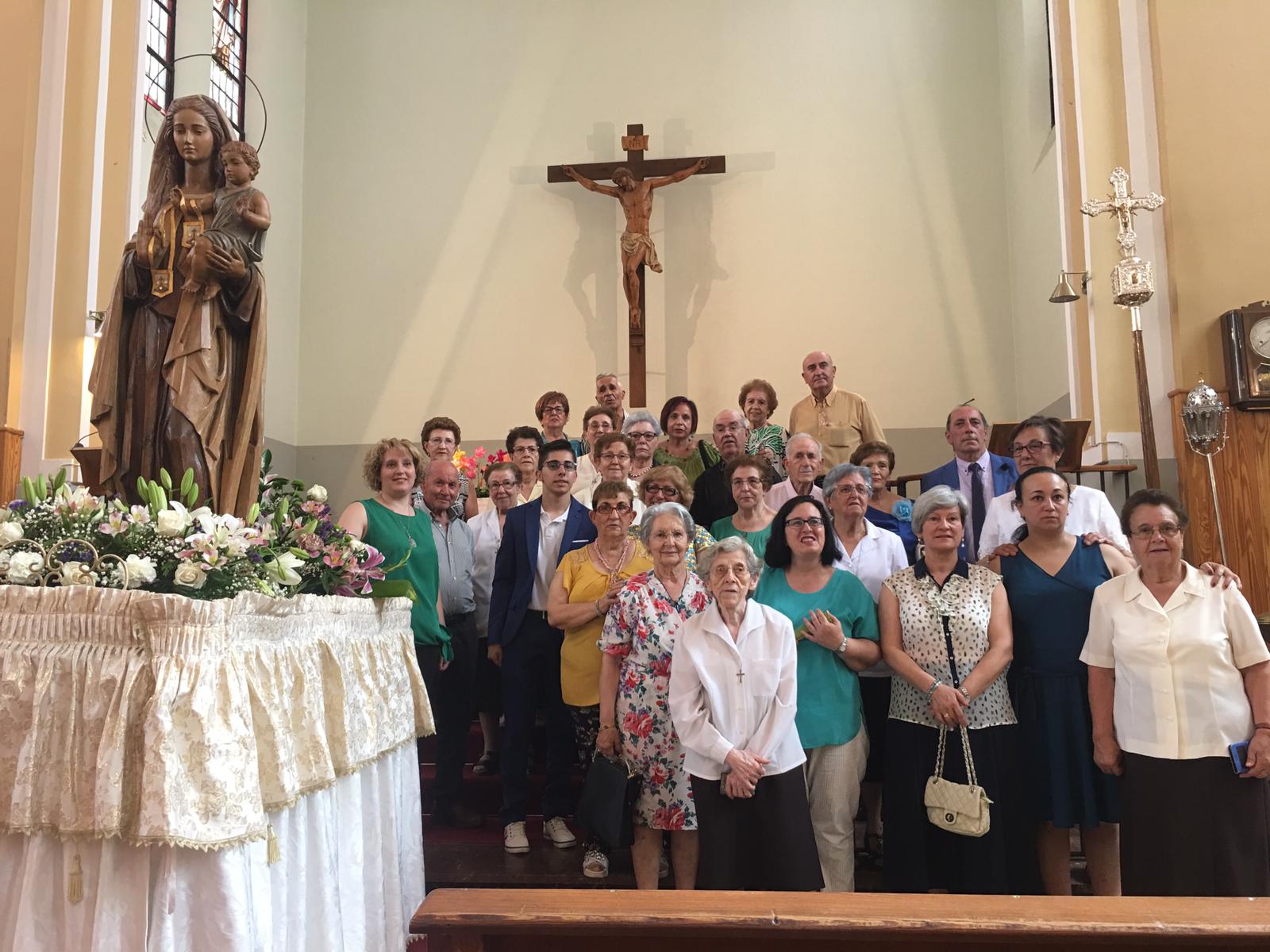 Antes del comienzo de la misa, la Virgen del Carmen se sacó en procesión por las calles del pueblo y se hizo una parada especial en el convento de las hermanas Carmelitas, que tenían adornadas sus ventanas para la ocasión con banderas y mantones de colores, para cantarle a la Virgen una salve por el coro parroquial acompañado de todos los asistentes con devoción.