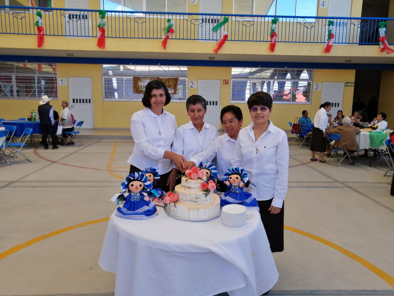 Iniciamos el día con una serenata que nos ofrecieron nuestras hermanas. Oramos juntas la Liturgia de Laudes y a la 1:00 p.m. estuvimos a punto en la Parroquia del Santo Niño de la Salud, en Querétaro, Qro., Parroquia a la que pertenece la comunidad del Hogar Teresa Guasch. Allí nos congregamos hermanas, familiares y amigos. Presidió la Eucaristía muy fraternalmente el Padre José Luis, Párroco.