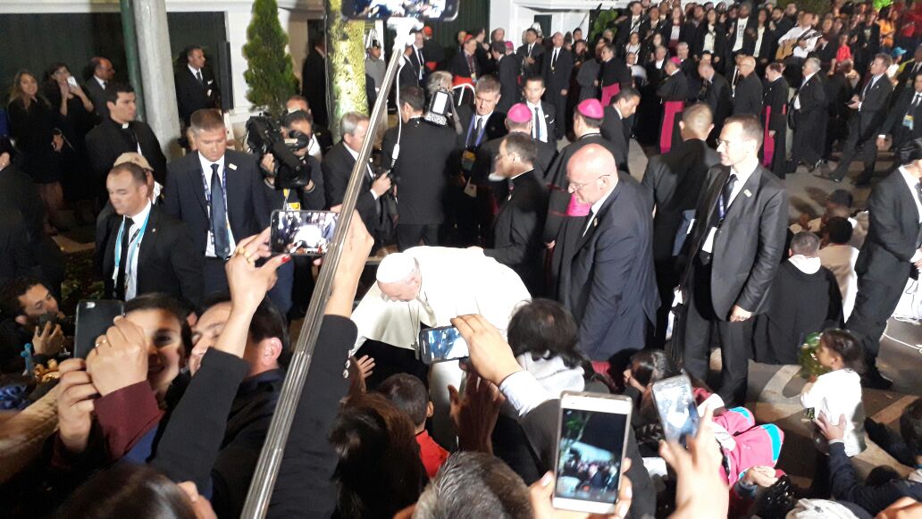 El miércoles 6 de septiembre el Papa Francisco, llegó a territorio Colombiano, con un mensaje de paz, esperanza y reconciliación: “Vengo a Colombia siguiendo la huella de mis predecesores, el beato Pablo VI y San Juan Pablo II y, como a ellos, me mueve el deseo de compartir con mis hermanos colombianos el don de la fe, que tan fuertemente arraigó en estas tierras, y la esperanza que palpita en el corazón de todos. Sólo así, con fe y esperanza, se pueden superar las numerosas dificultades del camino y construir un País que sea Patria y casa para todos los colombianos”. (Palabras dichas a su llegada a Colombia)