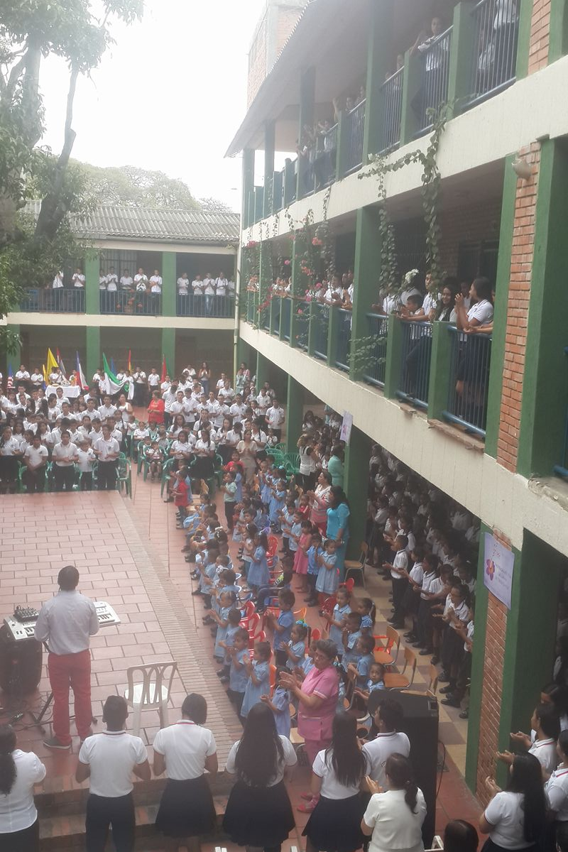 Ese día en horas de la tarde las Hermanas Hilda Lucía Ruíz Idárraga, Yamile Josefa González Rangel y Lina María Ortiz Téllez, acompañando a algunos familiares de la Hermana Yamile, salieron a la calle 26 para ver el paso del Papa Francisco hacia la Nunciatura Apostólica. Salieron de la casa Provincial, a las 14:00 horas y estuvieron allí por más de tres horas, en un ambiente de fiesta ya que se congregaron muchos colombianos, se percibía que quienes se encontraban allí vivían el momento con un espíritu de acogida, piedad y con el deseo de una gracia espiritual. Después de una larga espera paso, y le alcanzaron a ver de espalda, pero valió la pena el compartir con quiénes se encontraban allí. Mientras tanto en casa lo veían por televisión las Hermanas María Jesús, Lucia Adela y Lucy.