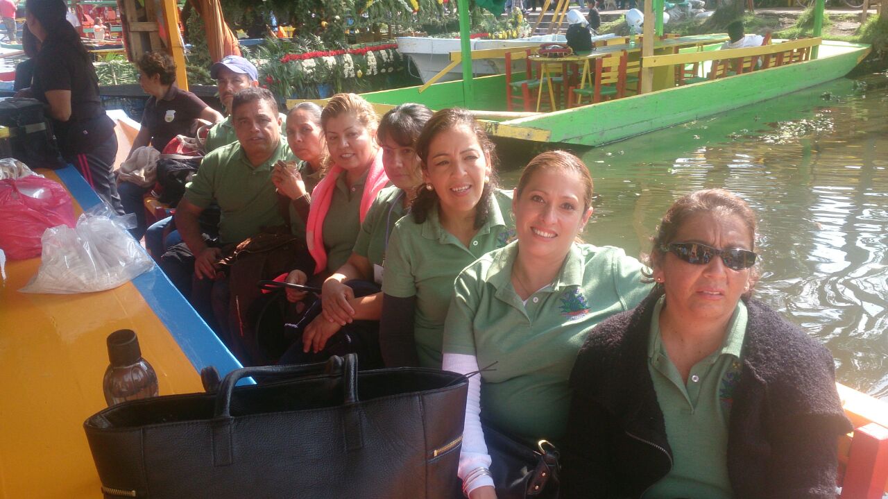 Finalmente en total sintonía de fiesta y celebración nos dirigimos a un bello y tradicional lugar de México, Xochimilco. Nos dividimos en grupos de veinte y nos subimos a una trajinera, donde además de disfrutar de un bello paisaje natural del lago, saboreamos una comida preparada con mucho esmero por nuestras hermanas y fraternos. Nos deleitó un grupo musical mientras íbamos recorriendo los canales del lago.