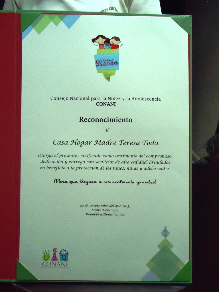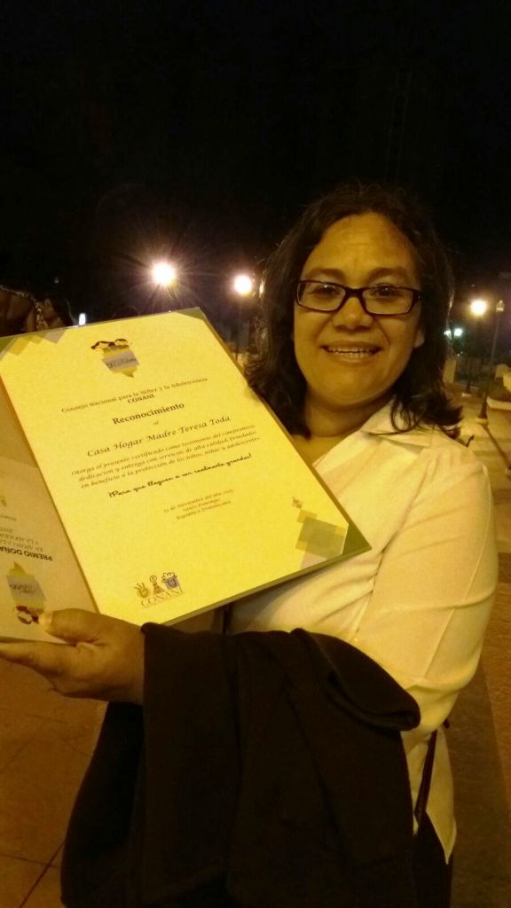 La Directora de los Hogares Teresa Toda, Hna. Josefina Acevedo Marmolejos, recibió este reconocimiento, el día el 23 de noviembre del año en curso. Enhorabuena!