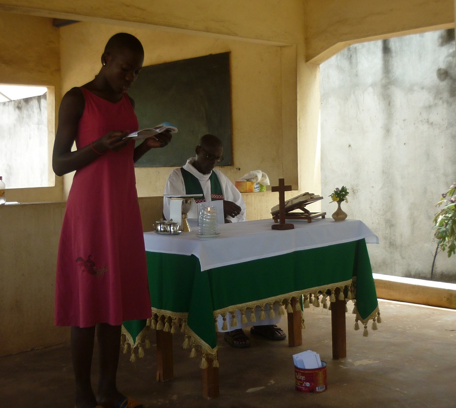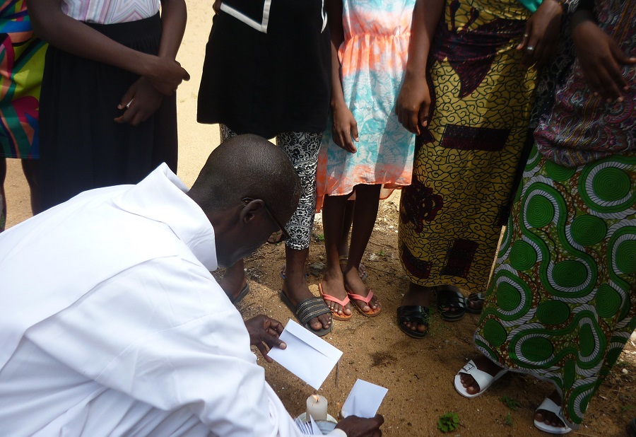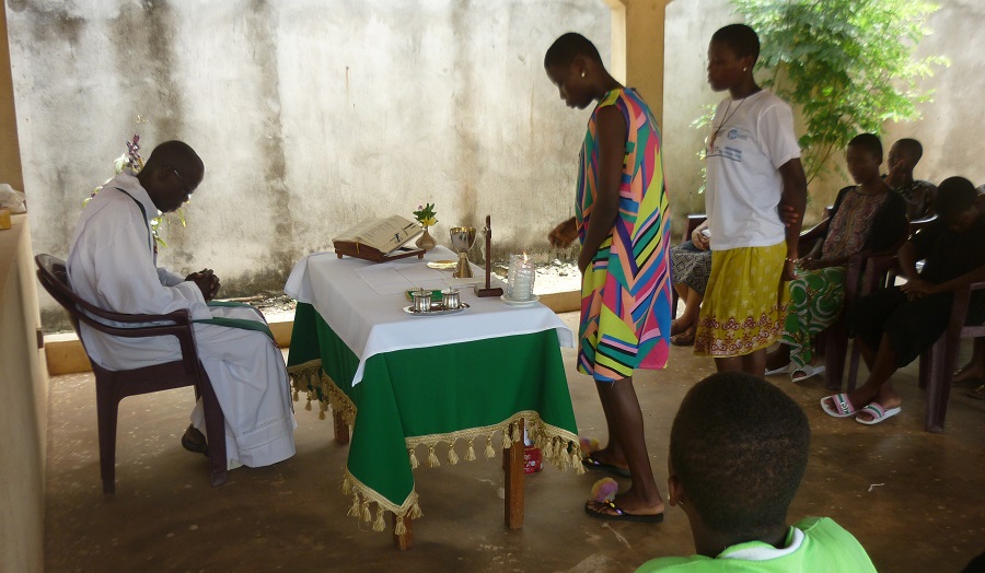 En el grupo participaron las 15 adolescentes y jovenes que estan en la secundaria. Acompañaron en la experiencia las hermanas Rose y Alma Lidia y les dirigio el padre Emile Bra (OCD) delegado de los carmelitas descalzos en Africa del Oeste.